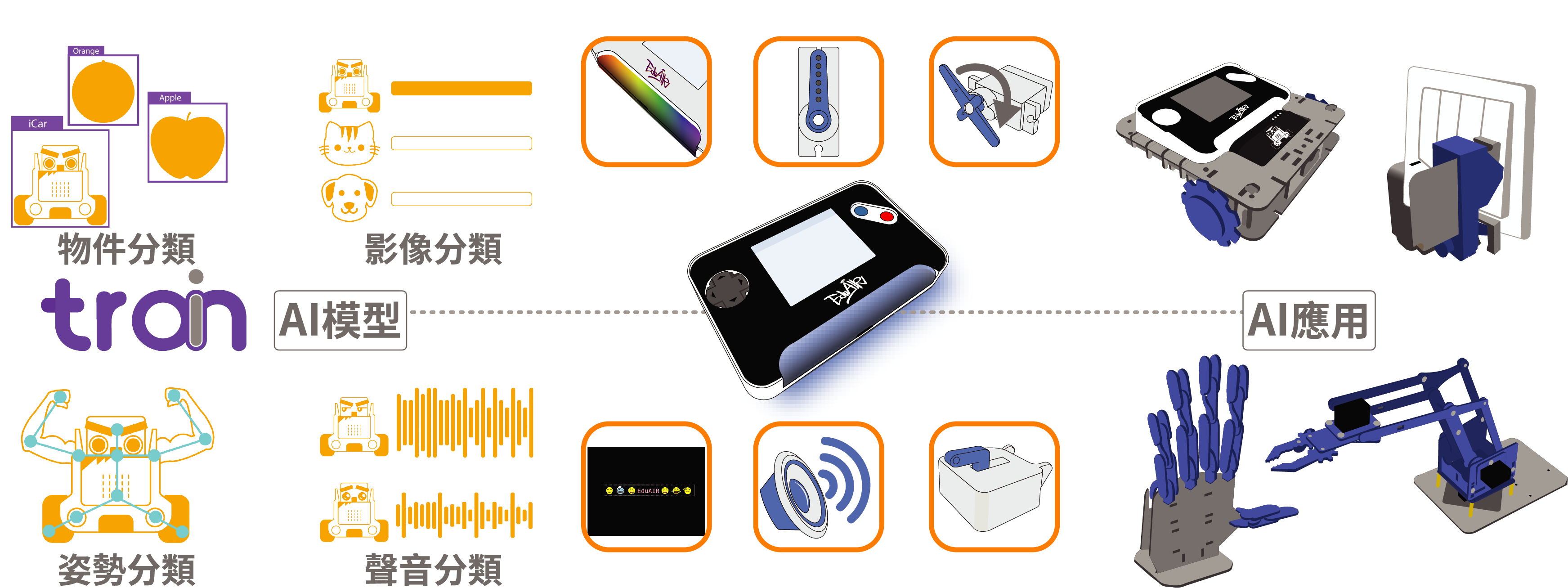iPort是由中大團隊開發的AI教學套件,只需簡單三步即可創作屬於自己的AI項目,鼓勵同學以創意學習AI。透過iTrain平台,無需編程即可訓練AI模型,然後將機械套件連接至iPort,iPort便可根據AI模型辨識結果控制機械套件,將作品轉化為AIoT項目。