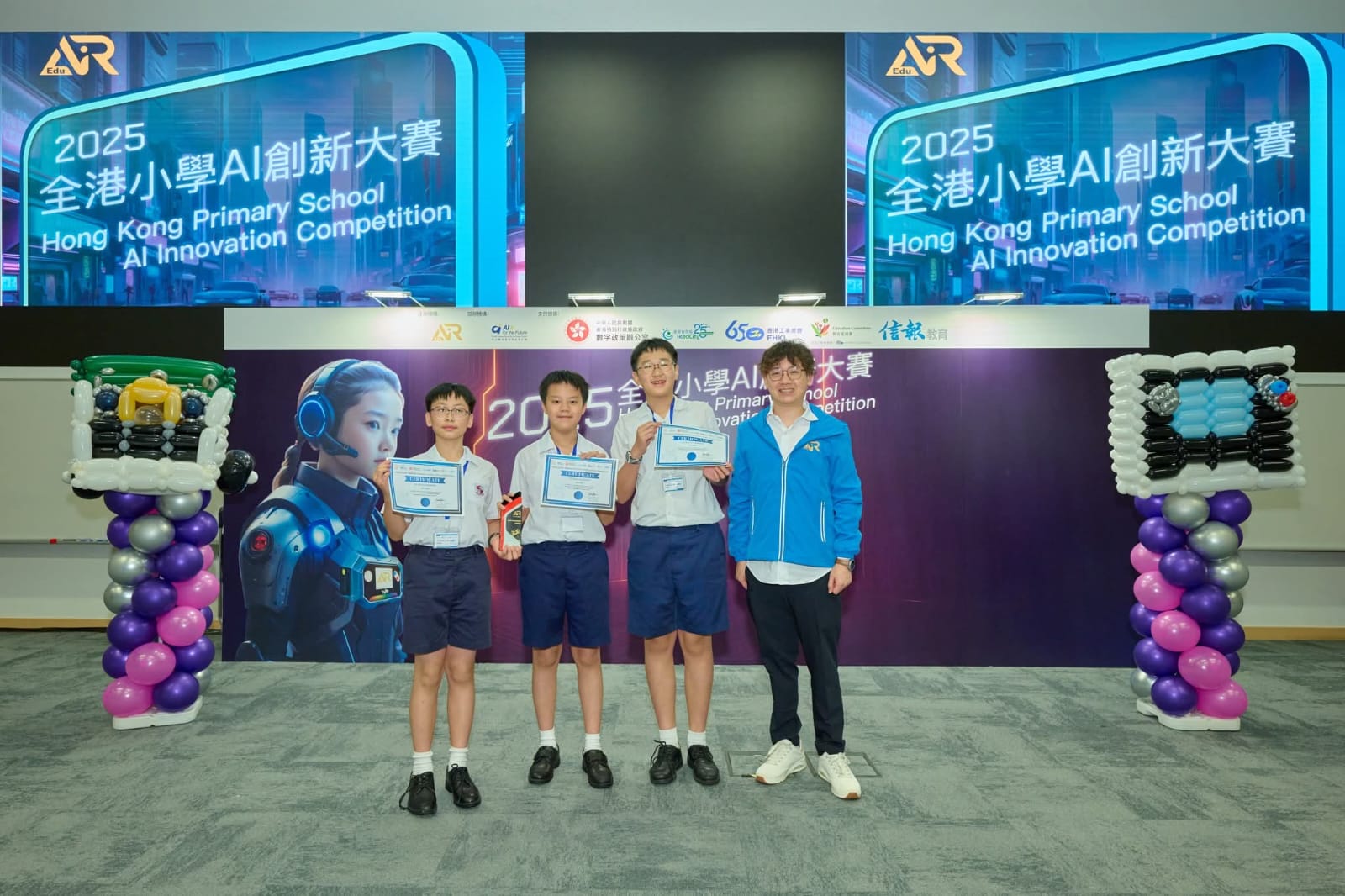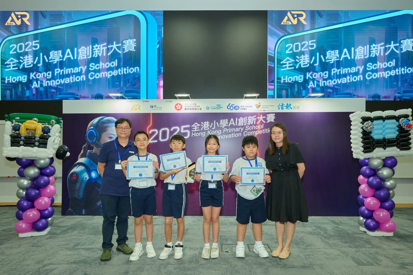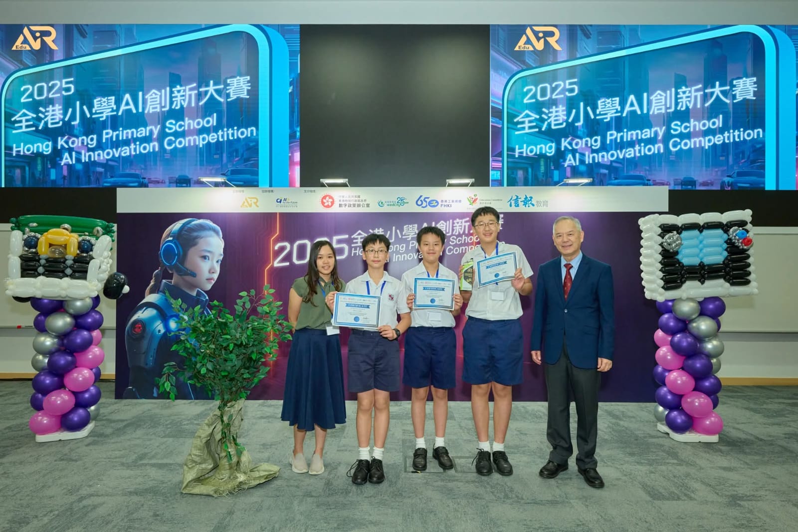由愛動智教育(EduAIR) 主辦的「全港小學AI創新大賽2025」總決賽 已於 8 月 28 日 圓滿結束。 是次比賽有超過100位學生參與,鼓勵學生運用由中大團隊研發的 iPort AI 教學套件,結合人工智能技術與創意思維,針對現實生活中如 長者照顧、無障礙設施、環境保育 等議題,提出具實用性與創新性的解決方案。這些作品不僅展示了學生對 AI 技術的掌握,更體現了他們對社會議題的關注與責任感。