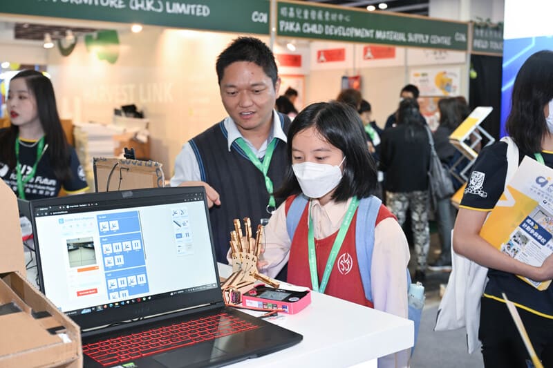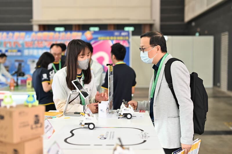 EduAIR 與中大賽馬會「智」為未來計劃於 2023 年 12 月 13 - 15 日在「學與教博覽 2023」合辦攤位。除了陳列不同的 AI 機械人展品外,也擺放了我們研發的 iCar 供公眾試玩,當中更展示了我們新推出的 AI 教學工具 — iPort。透過使用 iPort 連接不同硬件,學生能製作出各種有趣好玩、可互動的成品,例如 AI 彈珠台、 AI 熊熊、 AI 包剪揼等。現場亦設有 iPort 手勢控制 iPort 小車競技場,一眾老師和同學試玩時都樂在其中。